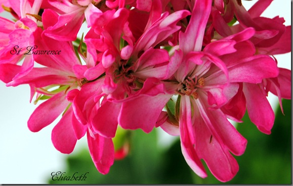St Lawrence har en tett og fin vekstmåte, og den er blomsterrik. Bladverket er olivengrønt med tydelig sone i midten på hvert blad. Blomstene er doble og lilla/rosa med hvitt øye. Nydelig plante.