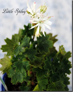Little Spikey er en yndig liten plante, nesten som en miniatyr. Planten får små nydelige cremhvite halvdoble blomster med rød/rosa prikker. Bladverket er olivengrønt uten mye soner .